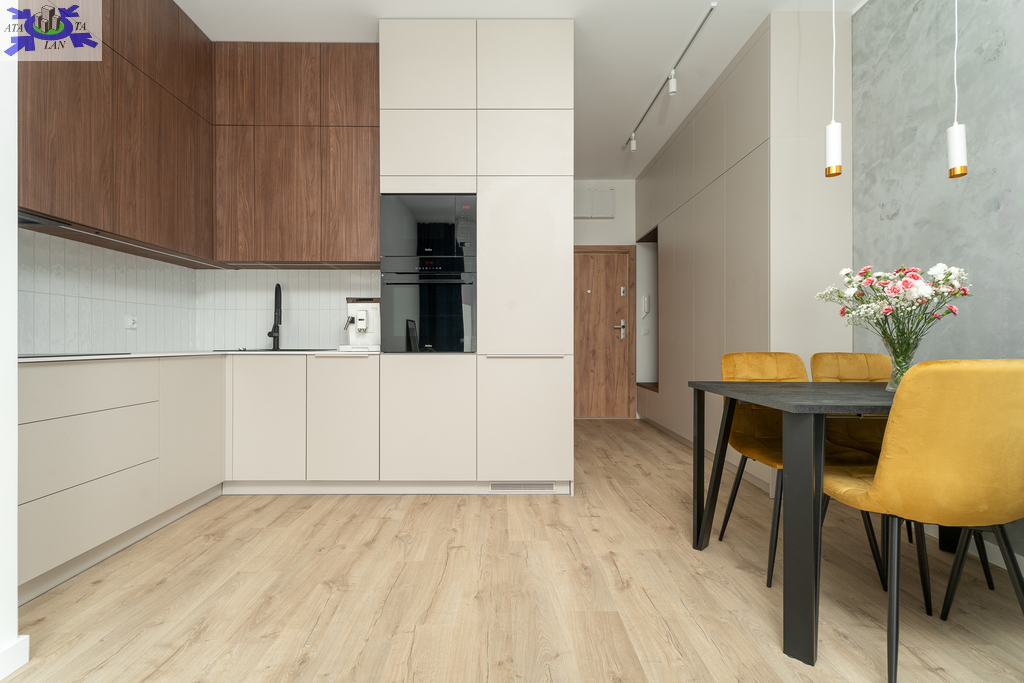 - wygodny salon z aneksem kuchennym, z którego jest wyjście na balkon