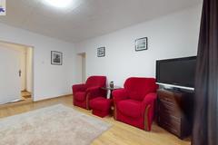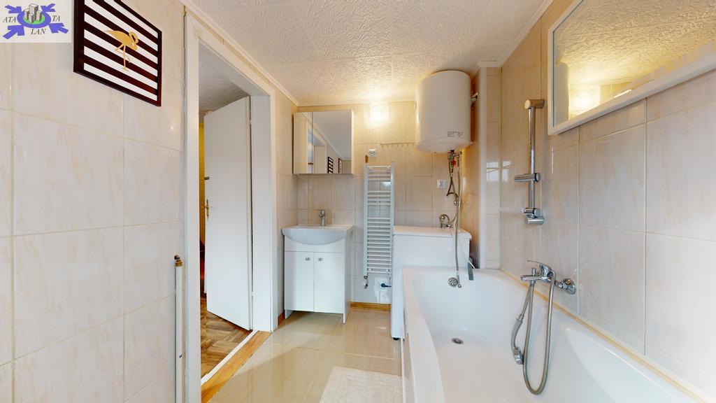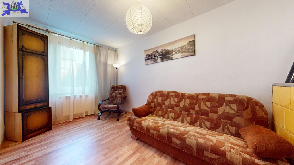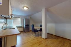 Na poddaszu jest trzecie mieszkanie z dużym pokojem dziennym, sypialnią, kuchnią i łazienką.