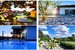 * zadbana przestrzeń ogrodu z licznymi nasadzeniami i podświetleniem
