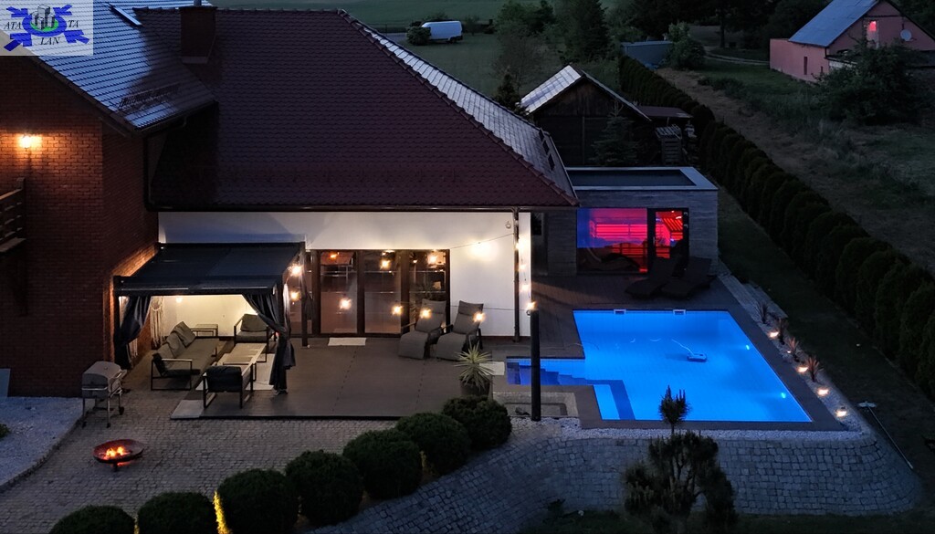 Wyjątkowo przestronny salon z jadalnią, duża kuchnia, taras i piękny ogród to nie jedyne atuty tej nieruchomości. Dom z sauną i basenem - idealne połącznie umożliwiające relaks i odpoczynek.