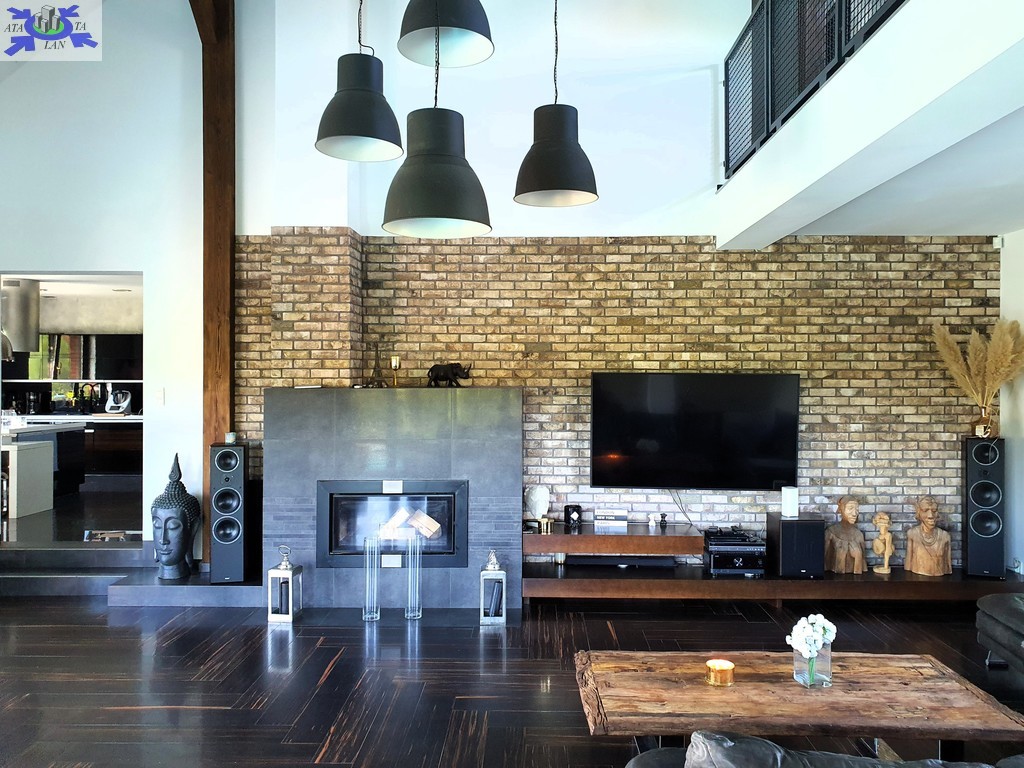 Salon 67 m2 z kominkiem i wyjściem na taras dający poczucie przestrzeni