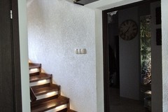 schody prowadzące na piętro betonowe - obłożone drewnem olchowym.