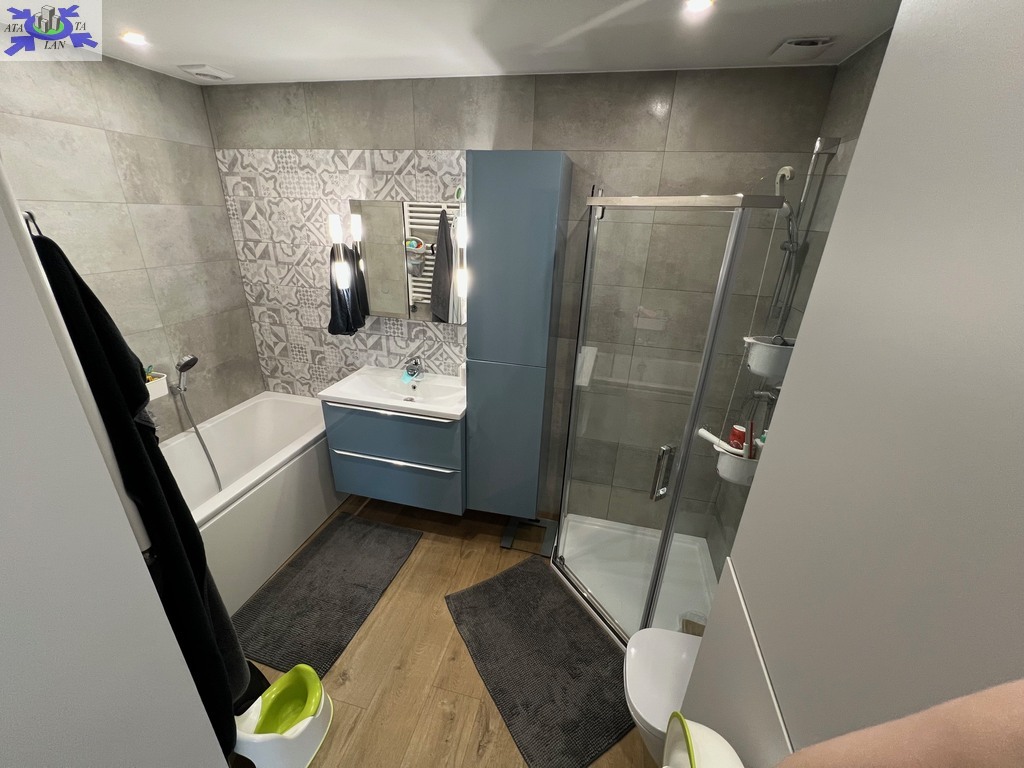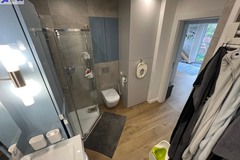 - Łazienka - wanna i prysznic, zabudowa z pralką i piecem