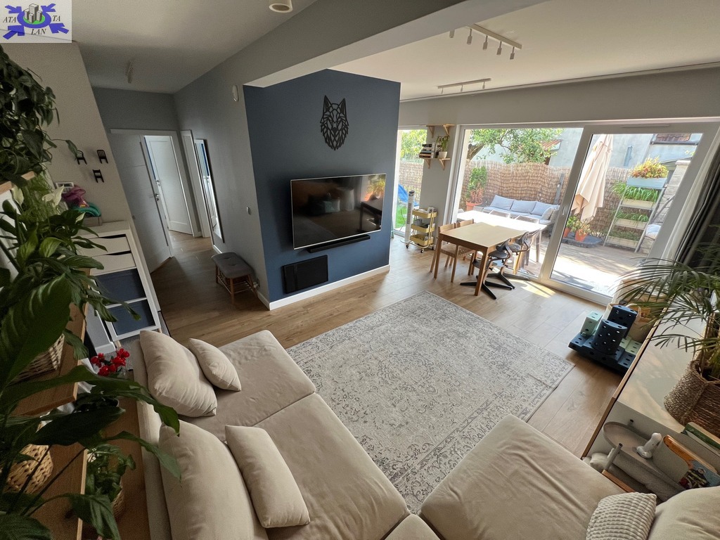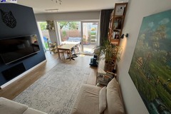 - Pokój dzienny z aneksem kuchennym (ok. 30 m2), wyjście na taras i ogród