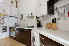 - pomieszczenie gospodarcze - posiada dwa wejścia, z przedpokoju oraz z kuchni. Można w nim ukryć garderobę oraz sprzęty AGD takie jak pralka czy suszarka.