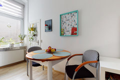 Mieszkanie znajduje się w ścisłym centrum, jednak ulica jest zielona, cicha, a widoku nie ograniczają kamienice. Dwie przecznice dalej znajduje się już deptak Bogusława, natomiast tyle samo dzieli nas w drugą stronę od Jasnych Błoni.