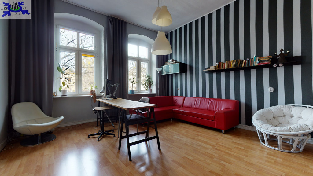 Niezwykle klimatyczne i funkcjonalne mieszkanie o powierzchni 99,24 m2, usytuowane na pierwszym piętrze poniemieckiej kamienicy w centrum Szczecina.