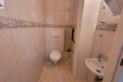 Łazienka z wanną w glazurze i terakocie, osobne wc z umywalką