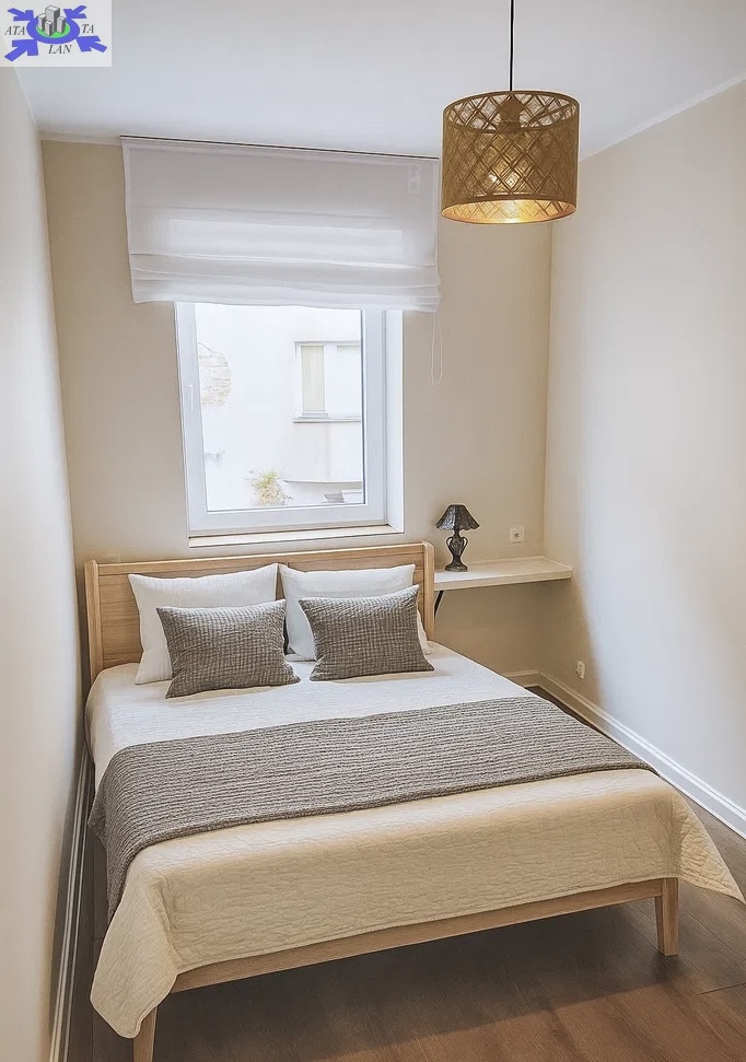Sypialnia wystarczająco przestronna, by wygodnie pomieścić duże łóżko i pojemną szafę - idealne miejsce do odpoczynku.