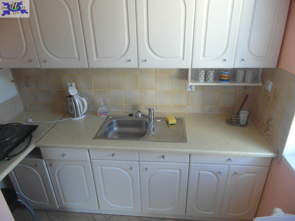 Mieszkanie składa się z większego pokoju o powierzchni 15m2 z wyjściem na duży balkon, maleńkiej sypialni 5m2, osobno kuchni 5m2 z oknem, łazienki z toaletą oraz przedpokoju. Mieszkanie oferowane jest do wynajmu po gruntownym remoncie. W pokojach na podłodze nowe panele, ściany gładzone i pomalowane w delikatnym kolorze (jedna ze ścian wykończona ozdobnym tynkiem strukturalnym). W większym pokoju znajduje się nowa, rozkładana kanapa dwuosobowa, stolik z telewizorem, dwie komody z szafkami i szufladami oraz obszerna szafa. W mniejszym pokoju znajdują się dwa regały z witrynami (typu POP) i łóżko. W kuchni nowe kafle na podłodze i fartuch kafelek na ścianach plus umeblowanie wykonane na wymiar w kolorze waniliowym, nowsza lodówka (na zdjęciu widoczna jeszcze starsza), nowa kuchenka indukcyjna, pochłaniacz oraz czajnik elektryczny. W łazience kafle na podłodze i kafelki na ścianach plus kabina prysznicowa, umywalka z blatem i szerokim lustrem wtopionym w kafelki oraz kinkietami, muszla podwieszana na geberycie. W przedpokoju kafle na podłodze (plus nowy wieszak na ubrania - na ścianie).