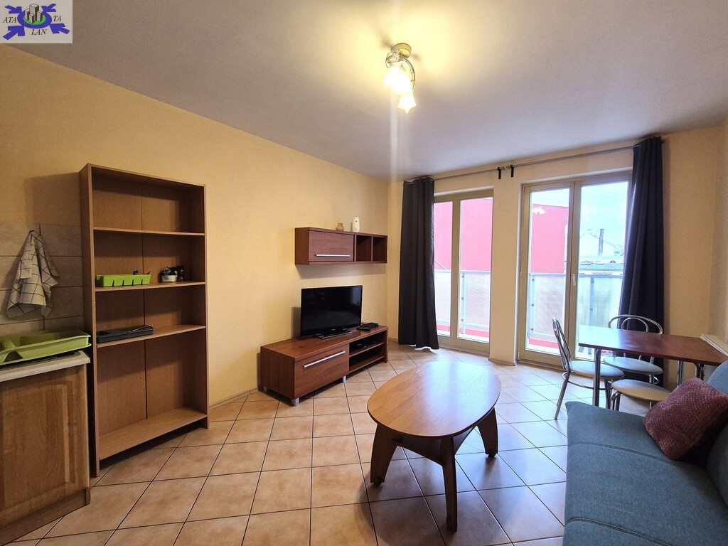 - salon z aneksem kuchennym (szafki kuchenne i sprzęt AGD pozostaje na wyposażeniu). Z salonu wyjście na balkon.