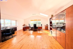 Część biurowa to 5 pokoi, duża łazienka i kuchnia.