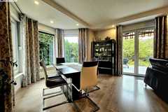 Na powierzchnię parteru budynku (ok. 130 m2), pełniącego jednocześnie rolę strefy dziennej domu, składają się otwarta, jasna kuchnia, przestronny salon połączony z jadalnia (z którego wychodzi się na taras oraz pięknie zaaranżowany ogród), łazienka z wc, pomieszczenie sanitarno - gospodarcze, pomieszczenie wielofunkcyjne (obecnie zaaranżowane na gabinet, pracownię oraz łazienkę z WC), korytarz i wiatrołap. Na piętro nieruchomości prowadzą piękne, drewniane schody. W górnej części domu (ok. 90 m2), pełniącej głownie strefę nocną, stanowią 4. sypialnie, garderoba, główna łazienka z pralnią oraz suszarnią, korytarz.