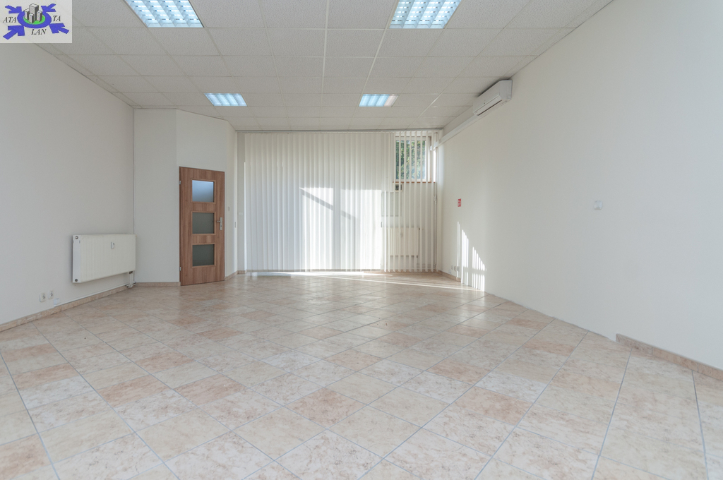 Lokal o powierzchni 68mkw, na podłodze kafle, sufit podwieszany z oświetleniem rastrowym.