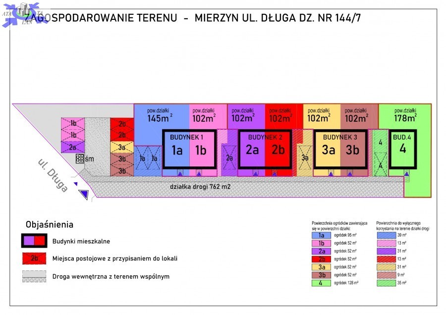 Działka ma powierzchnię ok 102 m2 w tym ogród ok 52m2.