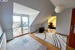 Schody prowadzą na II poziom gdzie znajduje się sypialnia, jest tam sporo przestrzeni pod skosami do wykorzystania np. pod garderobę.