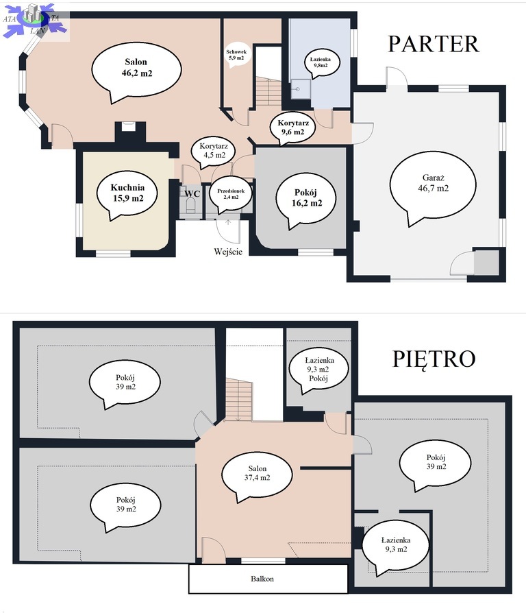 - Pokój 39 m2,