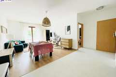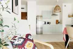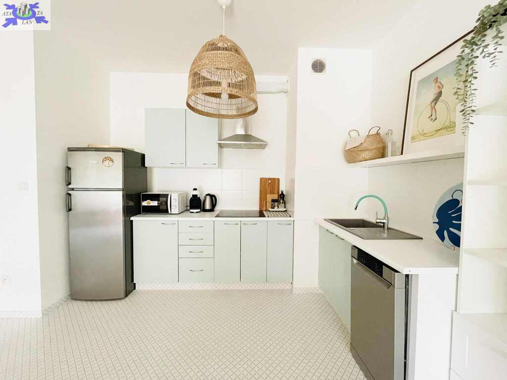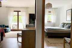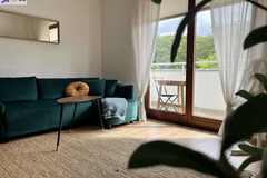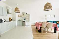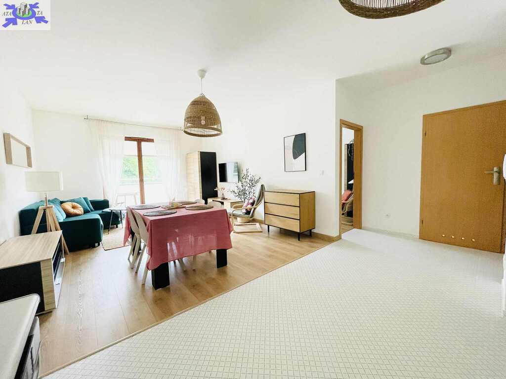 Mieszkanie składa się zsalonu z aneksem kuchennym w pełni wyposażony, z nową rozkładaną sofą, stolikiem kawowym, szafą, komodą, stolikiem pod TV oraz stołem z 4 krzesłami aneks kuchenny wyposażony