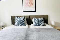 sypialni wygodne łóżko kontynentalne, szafa, stoliki nocne