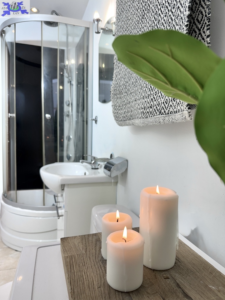- Łazienka zaskakująco duża, komfortowa, z prysznicem