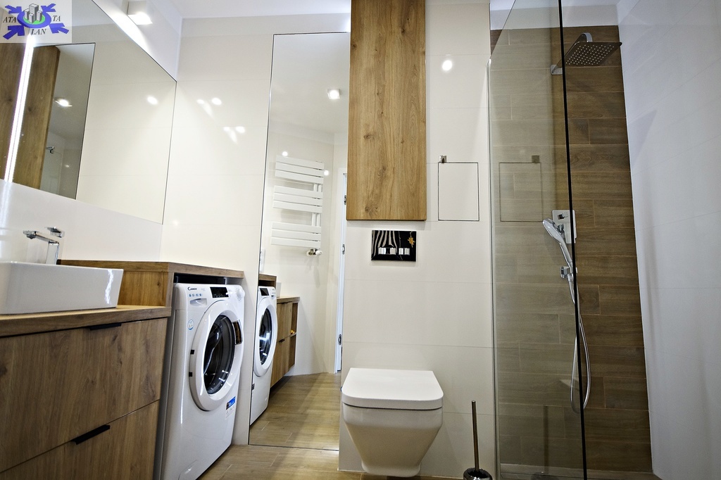 - Łazienka ok. 4 m2 uposażona w kabinę prysznicową, umywalkę, WC w glazurze i terakocie.