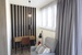 - Sypialnia ze słonecznym balkonem ok. 20 m2, uposażona w duże łóżko sypialniane, stoliki nocne z funkcją nawilżania powietrza, na lewej ścianie szafa w zabudowie służąca jako garderoba, na podłodze panele, ściany gładzone pomalowane.
