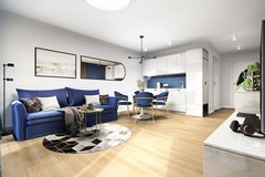 Ogrzewanie podłogowe we wszystkich pomieszczeniach apartamentu - gwarantujące równomierne rozprowadzanie ciepła, wysoki komfort użytkowania i estetyczne wnętrza bez tradycyjnych grzejników.