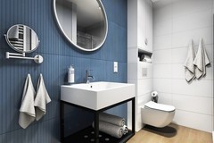 Stalowy grzejnik drabinkowy w łazience, idealny do szybkiego dogrzania pomieszczenia oraz suszenia ręczników.