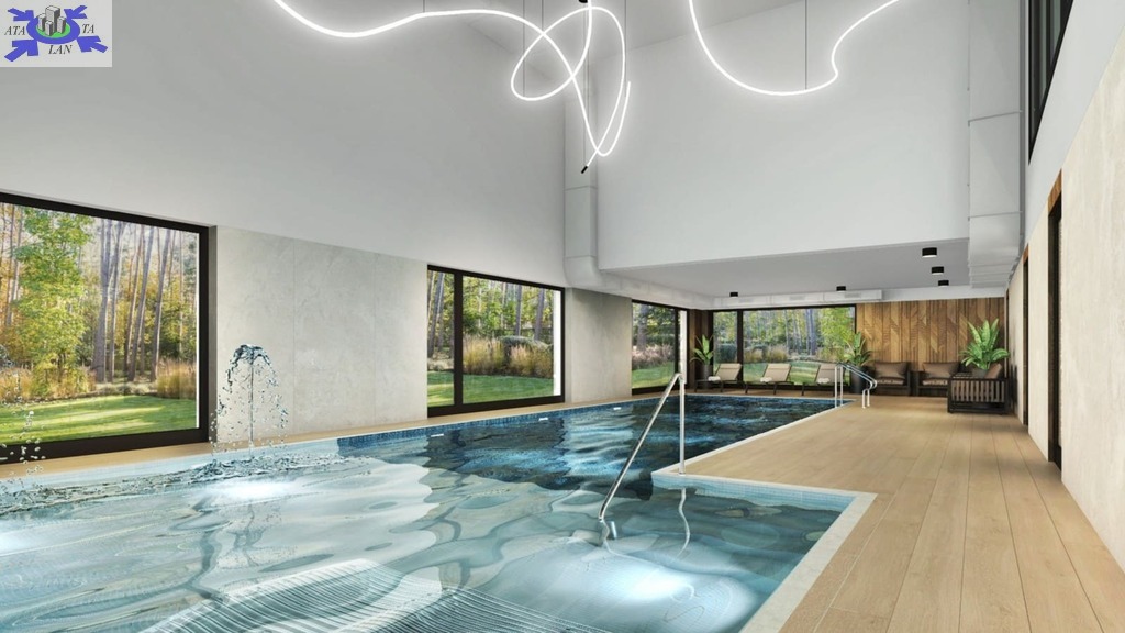Dodatkowo dostępne są miejsca parkingowe w cenie 32 000 zł netto, zapewniające wygodne i bezpieczne miejsce do parkowania. Opłaty do wspólnoty wynoszą około 10-12 zł /m2 miesięcznie i obejmują utrzymanie basenu, strefy SPA, części wspólnych, oświetlenia oraz systemu monitoringu. Lokal o powierzchni 32,99 m2, składa się z salonu z aneksem kuchennym, sypialni, łazienki wraz z WC oraz przedpokoju, taras o powierzchni 14,40 m2 oraz ogródek 48m2. . Każdy apartament wyposażony jest w ogrzewanie podłogowe, indywidualny dwufunkcyjny kocioł gazowy, energooszczędne okna PCV 3- szybowe oraz komplet instalacji RTV, internetowej i domofonowej. Balkony wykończono kostką betonową na parterze i płytkami gresowymi na piętrach, a ściany fundamentowe wykonano w technologii monolitycznej żelbetowej o grubości 24 cm. Istnieje możliwość wykończenia pod klucz w wariantach Standard 2200 netto/m2 i Plus 2650 netto/m2