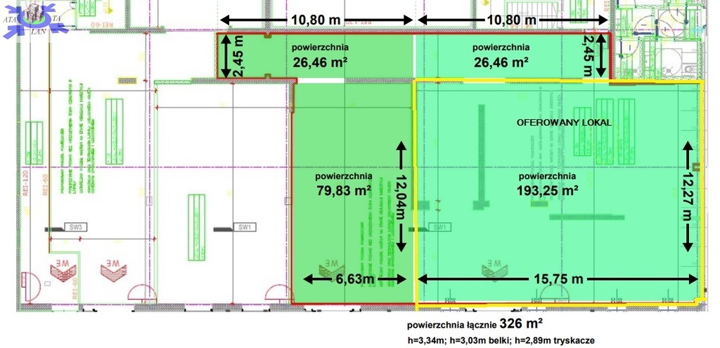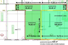 Możliwe jest powiększenie lokalu o dodatkowe 20,5 m2, lub połączenie z sąsiednim lokalem (79,83 m2), uzyskując powierzchnię 326 m2.