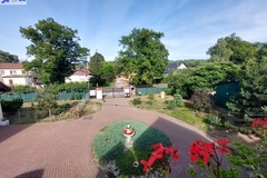 Domy wybudowane w latach 2005-2007. Duży dom ma powierzchnię 196,4 m2, mniejszy ma 86,21m2. Wspólny wjazd, wybrukowany teren, klomb na środku ronda.