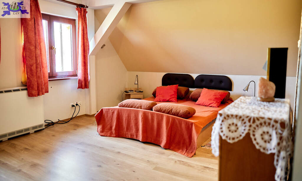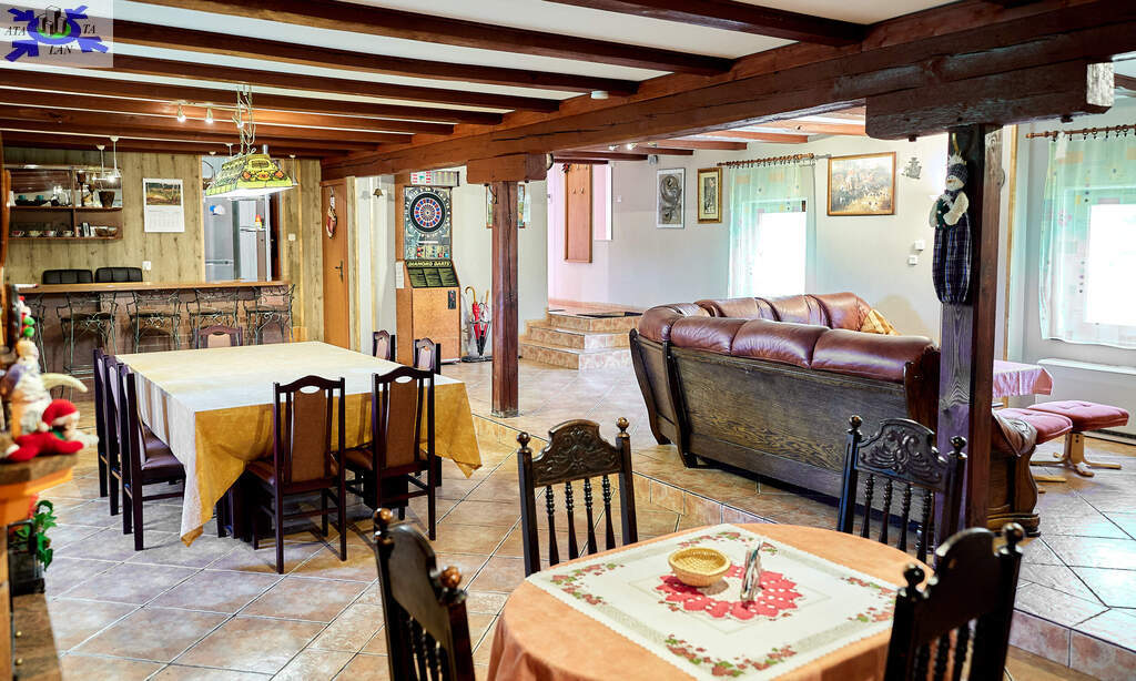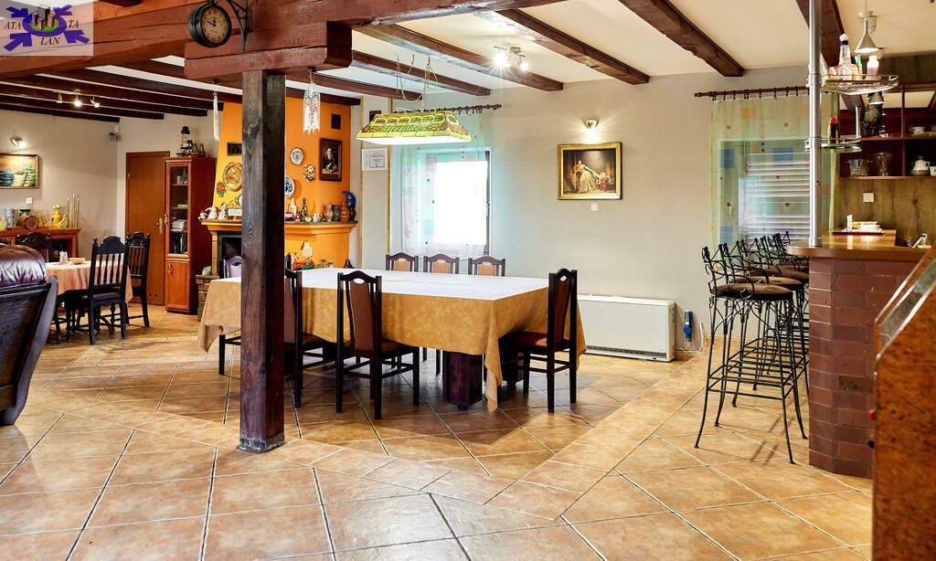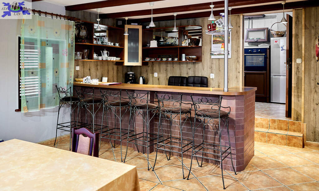 Kompletnie wyposażony, przystosowany do wygodnego, komfortowego zamieszkania nawet 10 osób. Oferujący dużą przestrzeń do wypoczynku, włącznie z sauną, dużą wanną z hydromasażem, boiskiem, grillem itp. atrakcjami.