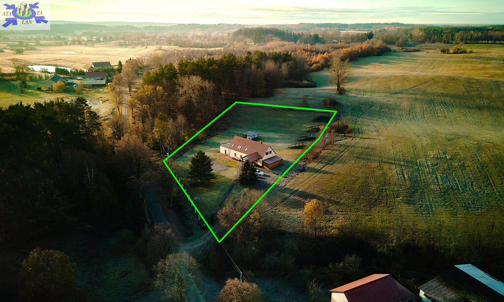 W najbliższym otoczeniu łąki, pola, niewielkie zagajniki oraz rozproszona zabudowa siedliskowa. Dojazd drogą asfaltową. Do najbliższego sklepu ok. 1 km.
