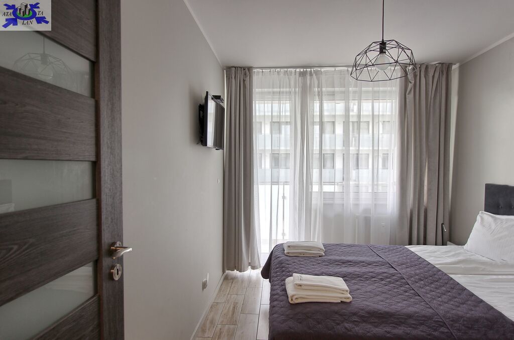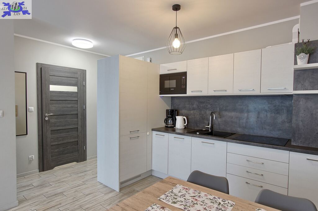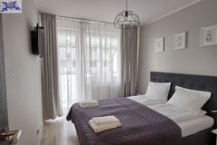 Apartament umeblowany, ładnie i wygodnie urządzony. Powierzchnia to prawie 38 m2. Składa się z salonu z rozkładaną kanapą, w pełni wyposażonego aneksu kuchennego oraz sypialni z łożem małżeńskim i łazienki z prysznicem. Dodatkowym atutem jest taras na który można wyjść z sypialni, jak i z salonu. W budynku znajduje się siłownia, rowerownia, a na dachu taras z leżakami. Teren obiektu jest ogrodzony. Budynek wybudowany przez solidnego kołobrzeskiego dewelopera, dobrze zarządzany. Koszty utrzymania to około 600 zł. Ogrzewanie i ciepła woda z sieci miejskiej.