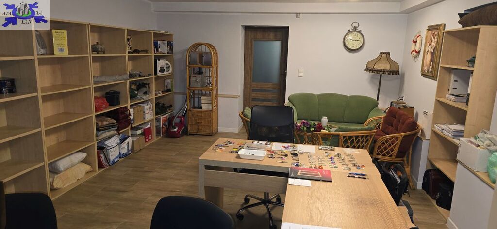 Oferowana powierzchnia 100 m2 składa się z dwóch pomieszczeń biurowych (29/24 m2), pomieszczenia magazynowego lub archiwum (19 m2), pomieszczenia socjalnego z dużym aneksem kuchennym i jadalnią (16 m2), łazienki z kabiną prysznicową (8 m2) oraz korytarza.