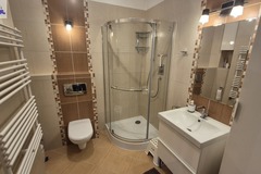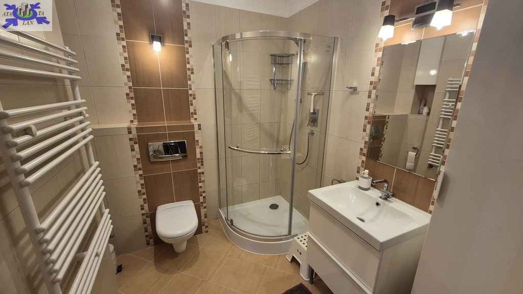W mieszkaniu mamy dwie bardzo duże i pojemne zabudowane szafy do sufitu (jedna w sypialni a druga na korytarzu). W salonie nowa zabudowa Besta prawie po sufit zapewniająca bardzo dużo miejsca jak i miejsce pod telewizor. Nowoczesna kuchnia z dużą ilością szafek oraz sprzętem AGD (zmywarka, lodówka, płyta indukcyjna). W salonie zamontowana klimatyzacja Daikin (pompa ciepła - można również nią grzać). W całym mieszkaniu rolety zewnętrzne elektrycznie sterowane z pilota. W pomieszczeniu gospodarczym praktycznie nowa pralko-suszarka Electrolux i dodatkowe półki i regał.