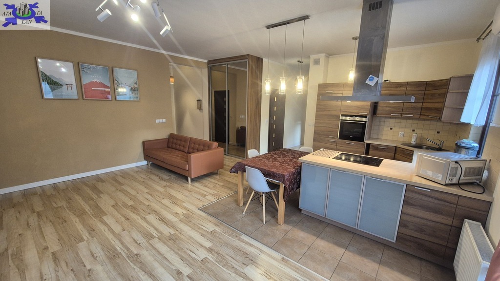 - duży salon z aneksem kuchennym 37m2 i wyjściem na balkon