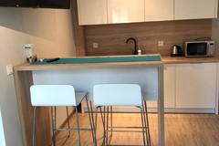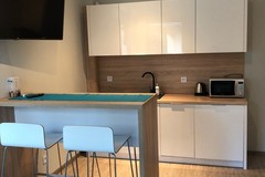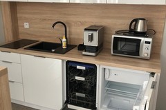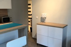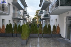 Budynek o nowoczesnej architekturze i niskiej zabudowie powstał w 2017r., przy kompleksie hotelowym, z basenem, SPA i restauracją. W apartamentowcu do dyspozycji użytkowników znajduje się winda . Mieszkanie jest w pełni umeblowane i wyposażone w meble, sprzęty RTV i AGD a także meble tarasowe. Rozkład lokalu jest bardzo funkcjonalny z przedpokoju o pow. 6m2 z szafą wchodzimy do pokoju z aneksem kuchennym o pow. 14m2, przestronnej łazienki oraz przytulnej sypialni 8m2.