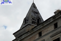 Zniszczony dach, zawalone drewniane stropy. zniszczone klatki schodowe,, brak stolarki okiennej i drzwiowej oraz wyposażenia.
