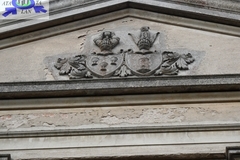 Do wnętrza pałacu prowadzą 3 wejścia frontowe,- pośrodku ryzalitu i 5-bocznego ryzalitu.
