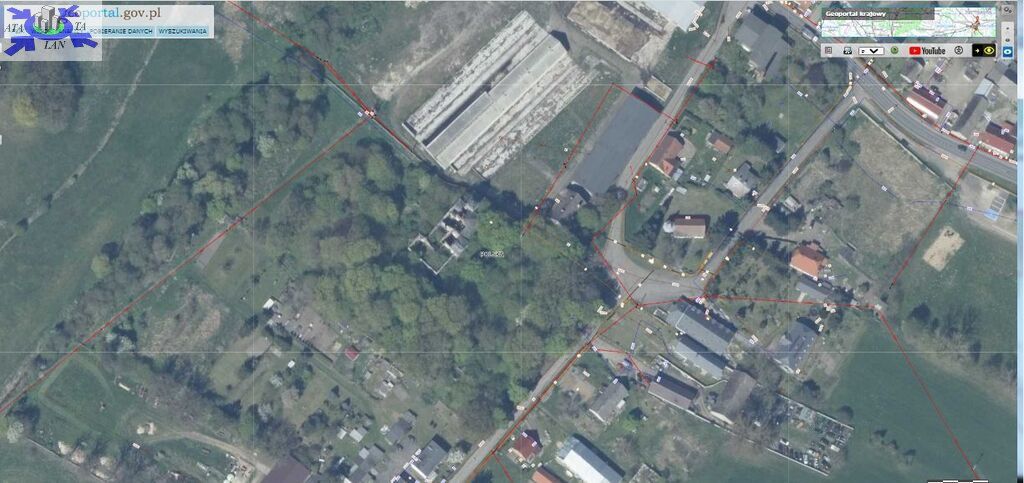 Działka ogrodzona siatką metalową , z wjazdem od wschodu- przez dziedziniec folwarczny.