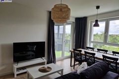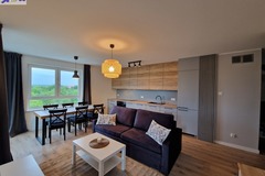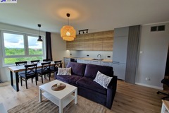 Lokum składa się z trzech słonecznych pokoi, które dzięki południowej ekspozycji okien są doskonale doświetlone przez cały dzień. Kuchnia jest wyposażona w nowoczesny sprzęt AGD, a w salonie znajduje się telewizor. Wszystkie pomieszczenia są wykończone w wysokim, atrakcyjnym standardzie.