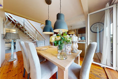 - otwarta kuchnia z jadalnią i wyjściem na balkon