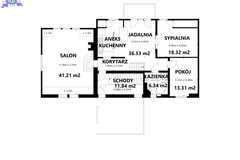 Parter budynku o powierzchni użytkowej 202,66 m2 składa się z