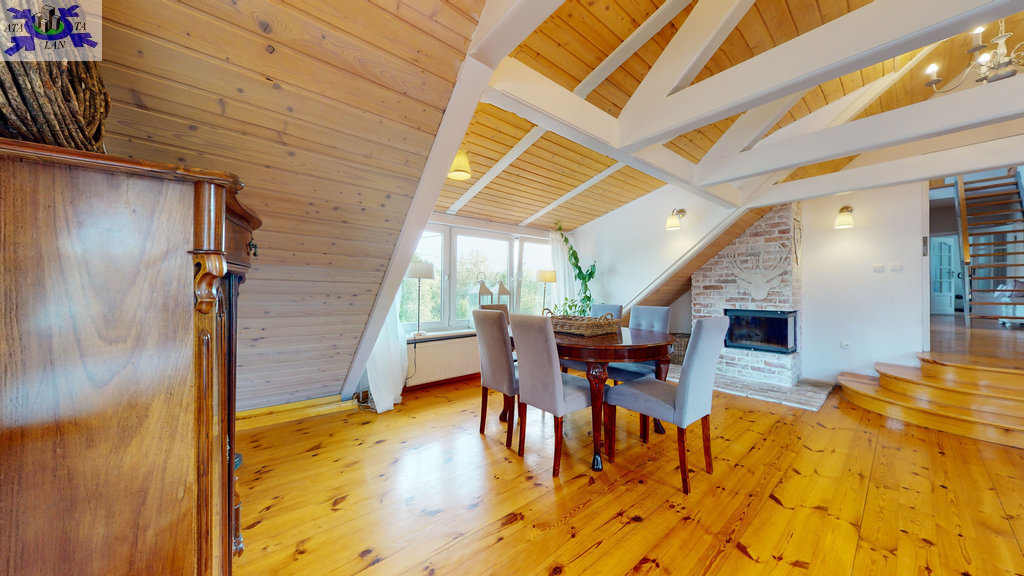 Nieruchomość na parterze jest w całości przeznaczona do prowadzenia działalności gospodarczej (aktualnie zakład stolarski), piętro i poddasze użytkowe pełnią funkcję mieszkalną. Cały obiekt o powierzchni całkowitej około 380 m2.