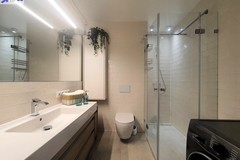 - łazienki w wysokim standardzie z przestronną kabiną prysznicową typu walk-in, wc podtynkowym, umywalką oraz pralką Samsung EcoBubble.