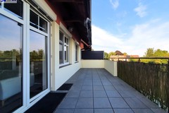 - tarasu o długości prawie 10m i powierzchni niemal 40mkw przebiegającego wzdłuż całego mieszkania wyposażonego w markizę oraz meble ogrodowe z technorattanu