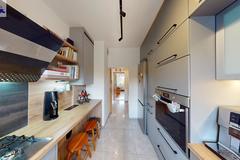 - oddzielna kuchnia z piękną, nowoczesną zabudową na wymiar aż do sufitu,