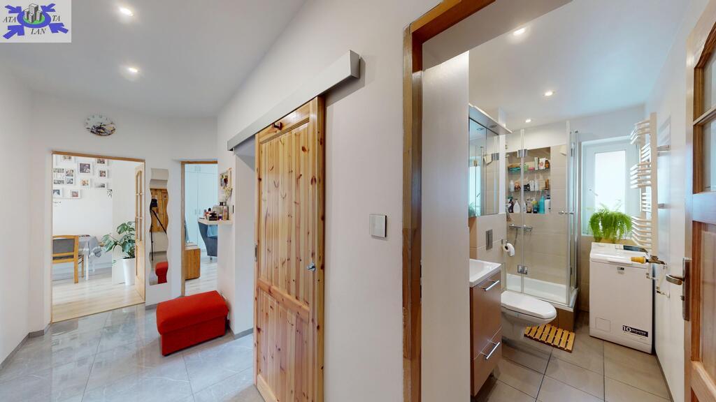 - łazienka razem z WC, wyposażona z kabinę prysznicową, z oknem,
