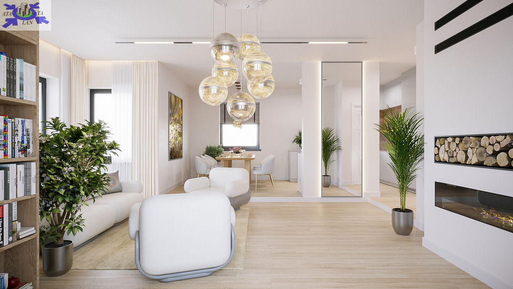 -salon z możliwością montażu kominka o powierzchni ok. 34 mkw